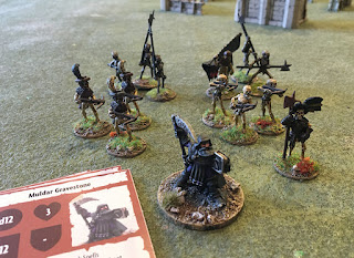 Great game. The poor good guys had truly abysmal die rolling. It just wasn't their day. Some nice moments in the game. We used the "Gruesome Kill" rule where any wound result of 10+ means any friends with 6" of the victim take a Shock marker. And to speed things up, any miniature with MORE shock than remaining wounds retreats.