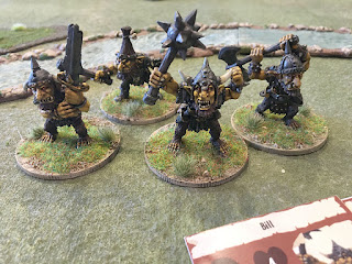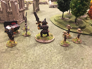 The forces of Chaos, Death and Destruction approach. The Necromancer chose the Horde trait for his retinue. Lots of troops at poor quality. Brian the bugbear spots the "Bloke on the party 'orse. 'Orses is good eating'.""You should get inside ma'am. Things are going to get loud and messy." The Dwarves have the firepower, but have to take time to reload. Meanwhile the barbarians have no ranged abilities but will certainly kill anyone they beat in combat.
