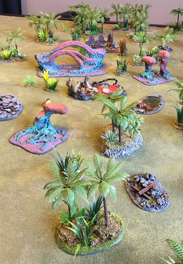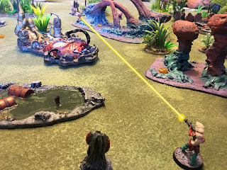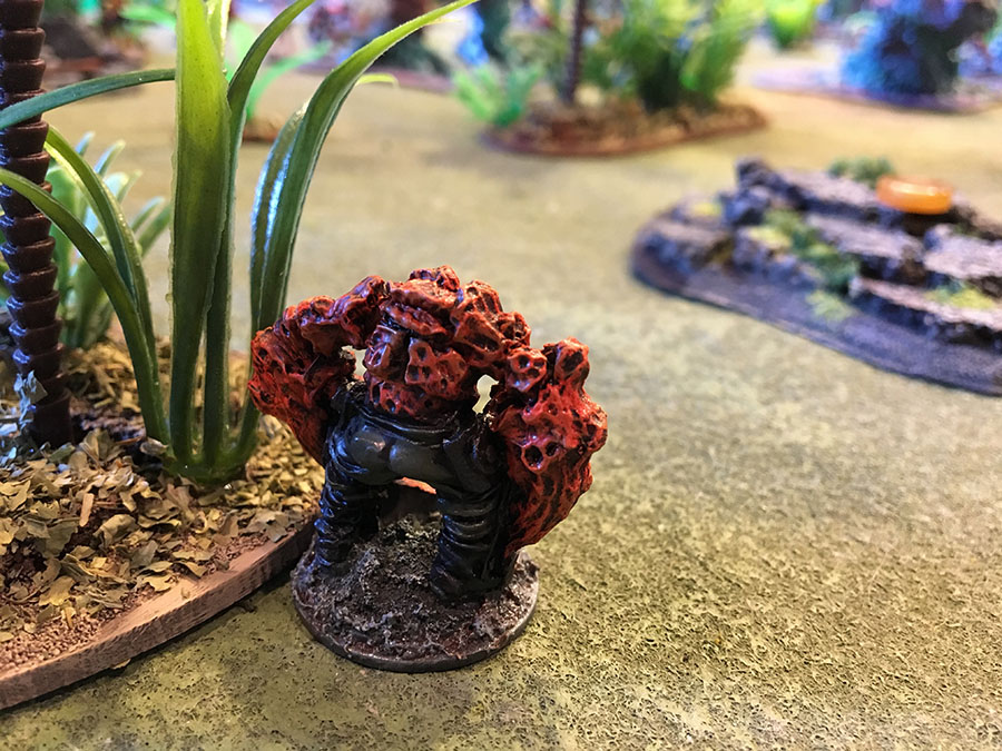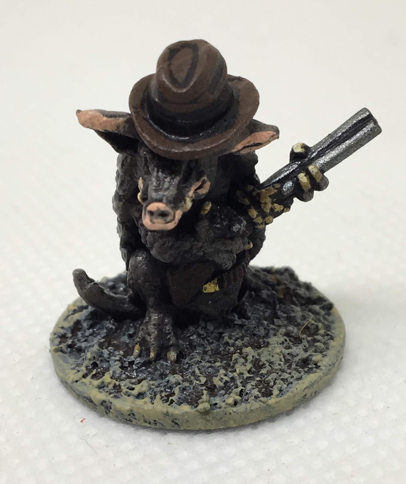The Animal Kingdom mutants were also stacking up loses. Their leader, The Ape With No Name was out in turn 2. Armand the Armadillo released a stinking cloud to cover one of his gang digging around for loot. Instead of ancient treasure he released a horde of hornets causing every around to gain 2 Shock markers.