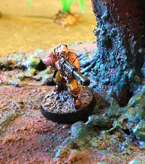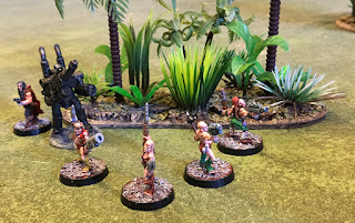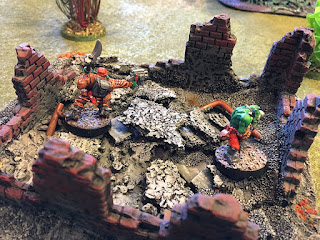 Meanwhile, Orange Julius (those who follow this blog know the name. A misogynistic lout who regularly gets killed first turn) and his girls were taking heavy fire from both the Knights of Genetic Purity and Sweet Jimmy's family of mutants.