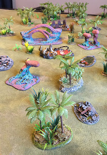 We had a 6 player game of Wasteland Warriors last night. This was mainly to try out the "Scavenging" rules. Resources in the Wasteland are hard to come by, so part of every scenario includes a few spots around the table where food, gear and equipment of the ancients can be dug up. But careful, sometimes things can go horribly wrong. You might trigger a booby trap and stir up a sleeping monster...