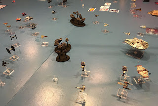 A strange series of events happened. Basement General Steve (he of all the Star Wars minis you see on the blog) stumbled upon a horde of X Wing miniatures at the 1/2 Book Store. What can you do with all those miniatures and a regular group of 6-8 players?