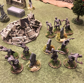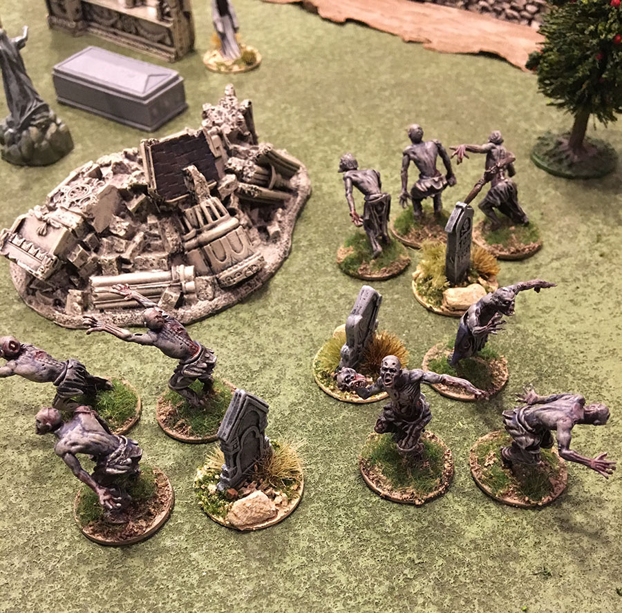 Another great game. The good guys put up a good fight. Taking down the undead is tough work. They realized too late that a good tactic is to wear down the vampires with lead (shooting can only result in shock) and then move in for the kill with a stake.