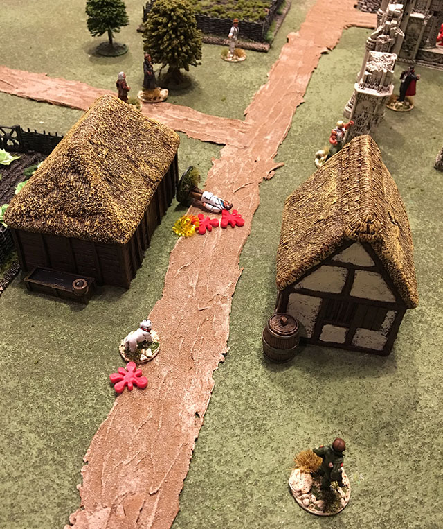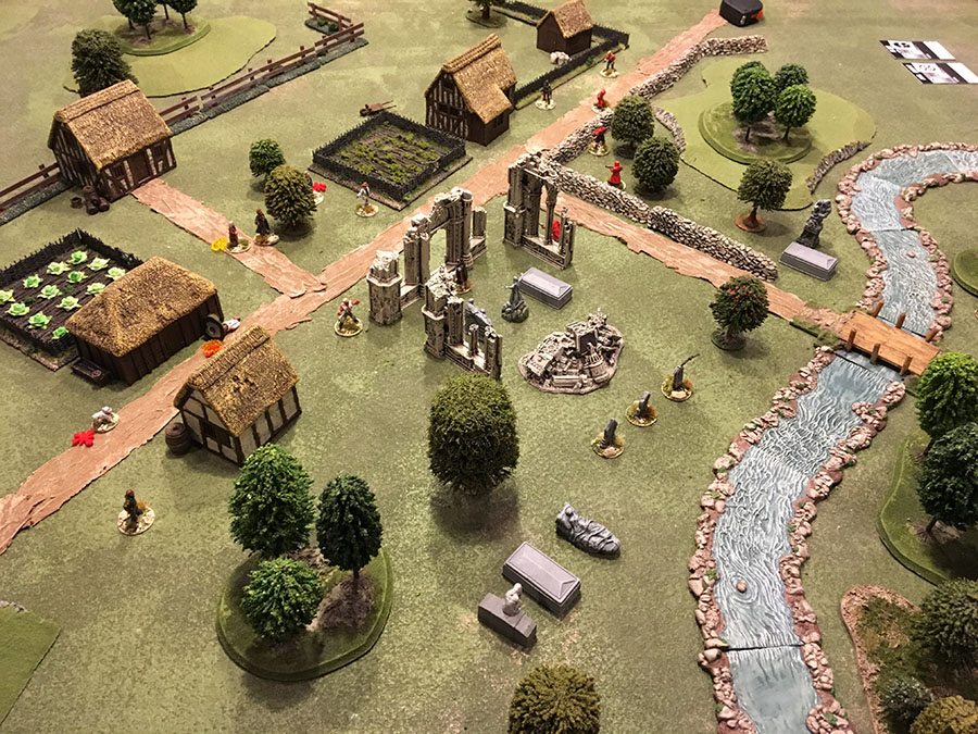 Minutes before dawn, the Powers of Good were forced from the village. The Baron safe to slumber through the hated day, guarded by serving lackeys. Unfortunately, his beloved Lucretia was staked and destroyed. Time to look again for a new bride tomorrow night...