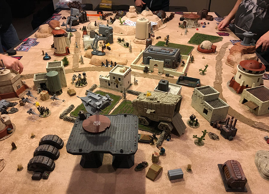 As a reminder, Big Battles uses the same mechanics as standard FfoL, just switching out single minis for units. In this case, we made units of 5 men, speeder bikes, whatever. Then added in some Heroes, like Jedis and Villains, like Sith Lords as single figure units. We just used the cards for these single from our Galactic Heroes games.