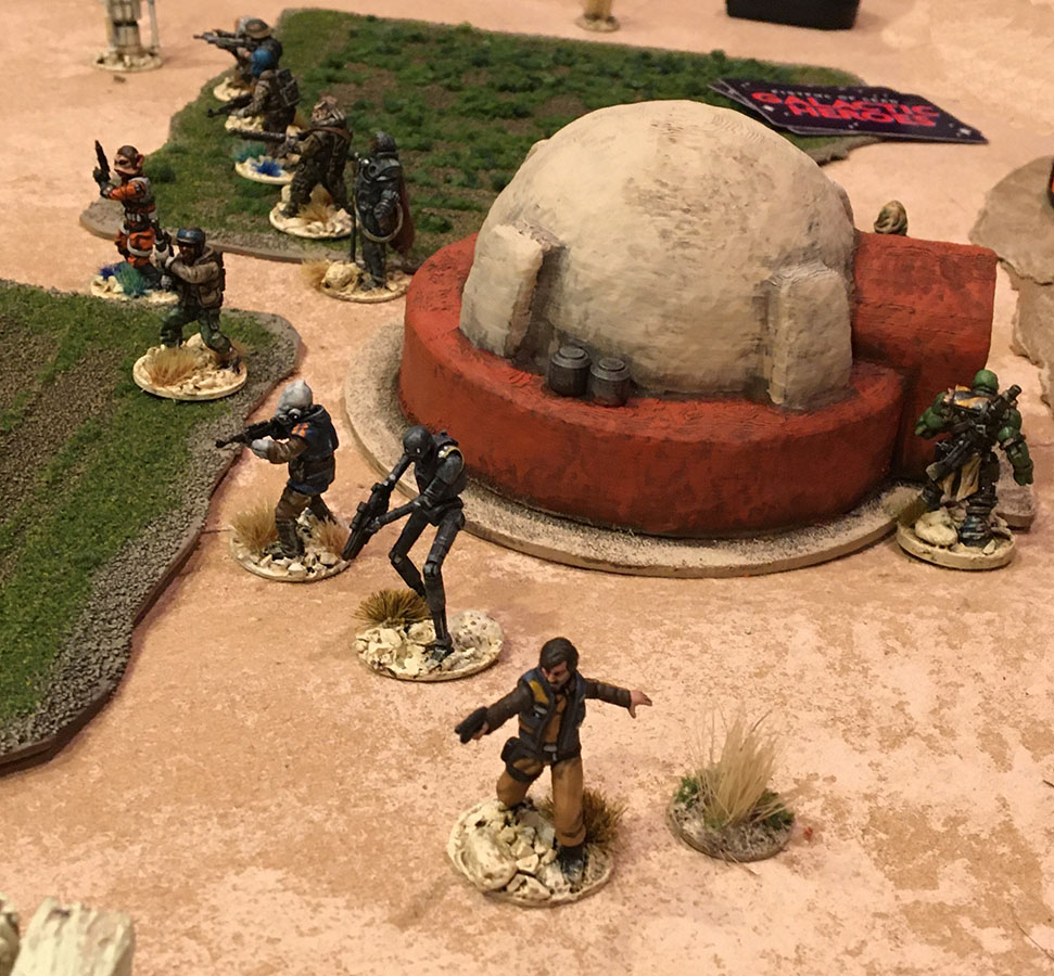 Rebels let the Imps have it! 2 Shock and 2 wounds (figure removal) send the Imps packing.