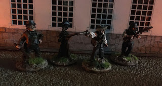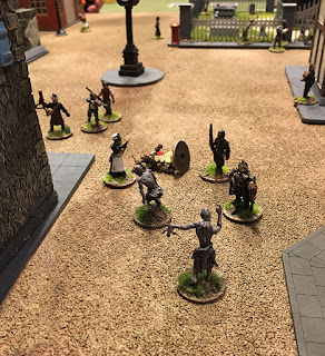 Despite their best efforts and some truly abysmal rolling, the Hunters ultimately failed. Throckmorten was awarded the trophy for his number of revenants destroyed and destruction of 2 spawn points. However, he'll have to retire to country house, as London is now overrun with undead.Another great outing. I let players knocked out early to run the zombies and could still score points by taking out Hunters. But they took their terrible dice rolls with them into the after life.