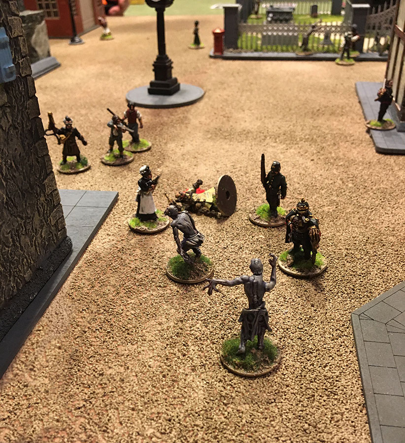 The Prussians and Prof Nightshade take the brunt of the undead tide.