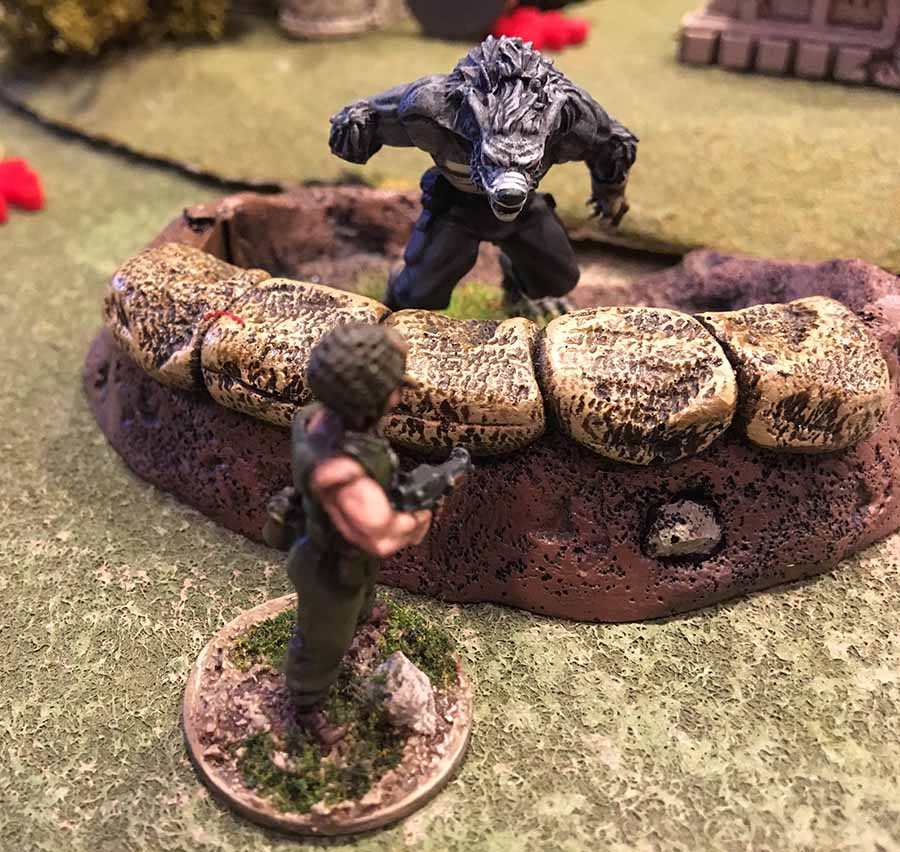 One of the werwolves left forward, rending the the paratroopers until one brave soul charged forward. The eviscerated the werewolf. Bayonets work!
