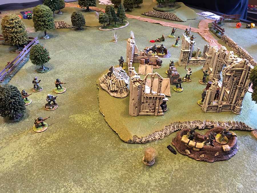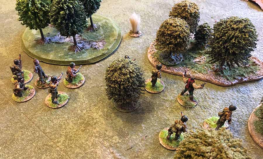 By the end of the "Kings" round of the first turn, half the paratroopers that landed close were cut to pieces. By the end of the entire first turn, it looked like the Americans were doomed, especially when a German soldier let out howl and transformed into a werewolf.